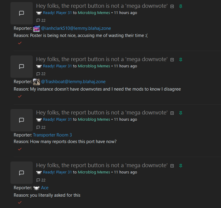 I don’t think I’ve ever seen that, is that maybe instance or client specific? Otherwise I doubt that I’ve only ever been the first person to report a post.