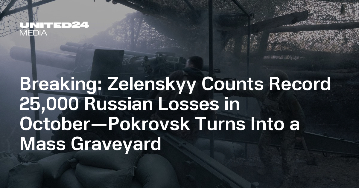In October, around 25,000 Russian soldiers were confirmed killed on video, with an additional 2,000–3,000 estimated casualties not captured on camera—the highest monthly toll since the start of the full-scale invasion in February 2022, President Volodymyr Zelenskyy said during a meeting with press on November 7.