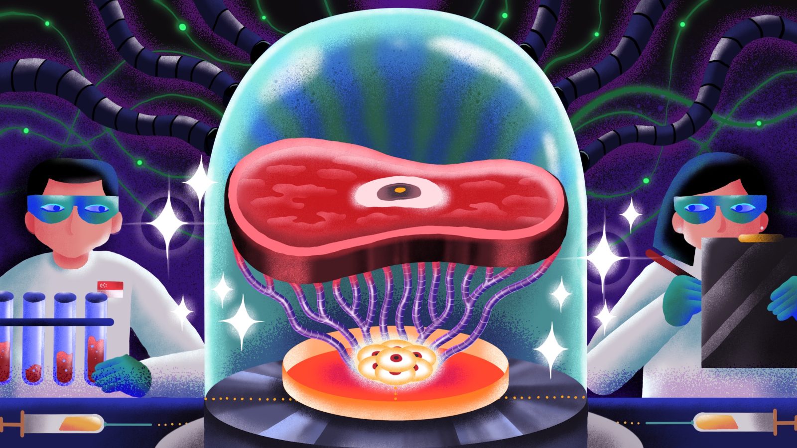 there are still some major challenges though. Not insurmountable, but challenges nonetheless. One of the most interesting I found is that you need to protect the meat from bacteria and fungi. A animal has an immune system (and a host of antibiotics pumped in to them). A piece of meat growing in vat hasn’t. But it does have optimal conditions for growth of bacteria. So you need a clean lab environment. That’s possible, but very hard to scale up.