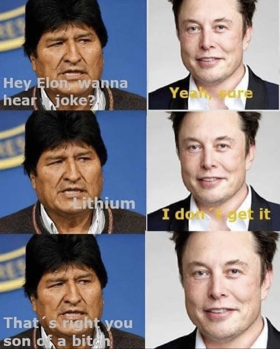 Once it’s extracted, someone’s going to get that lithium. After the coup Elon vocally supported failed, that someone won’t be him.