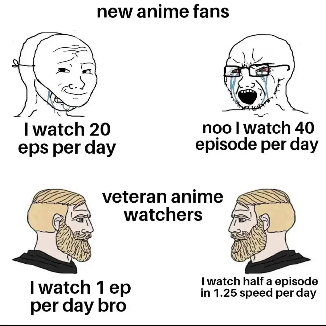 I go weeks at a time without anime, find a show I really like, get 7 eps deep and then find another show I like, then end up watching Gunhed.