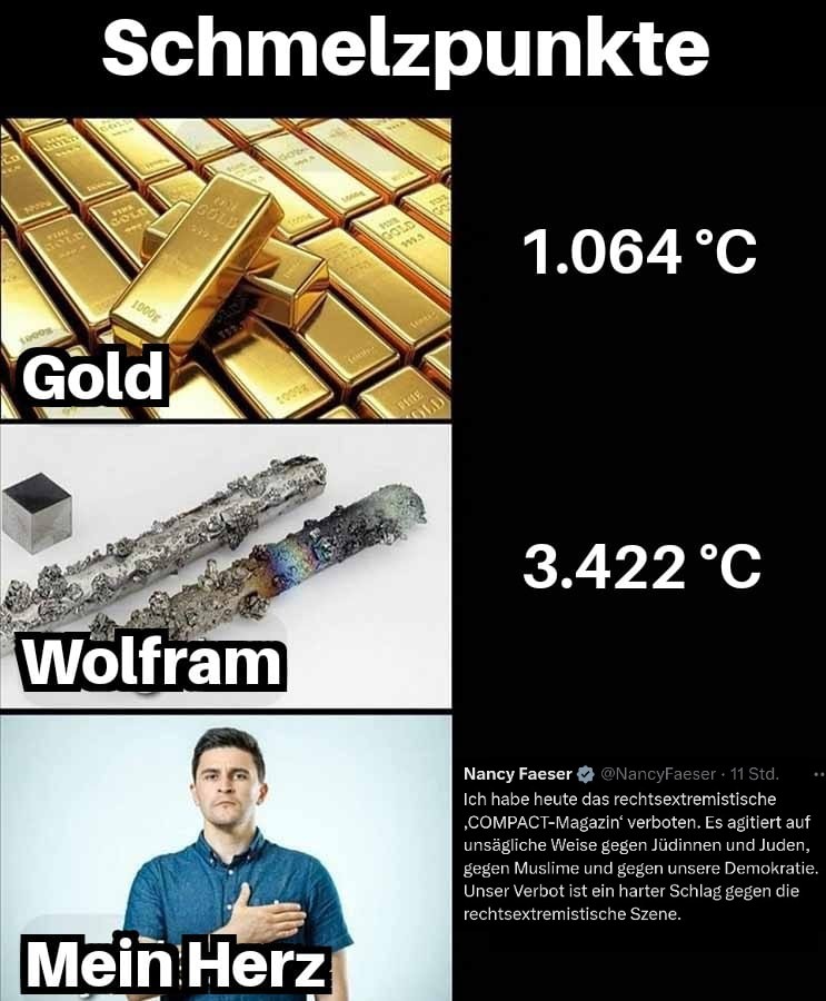Aufgrund der Anordnung scheint das auch zu implizieren, dass Dein Herz härter als Wolfram ist und Du Nancy heißer als 3422°C findest.