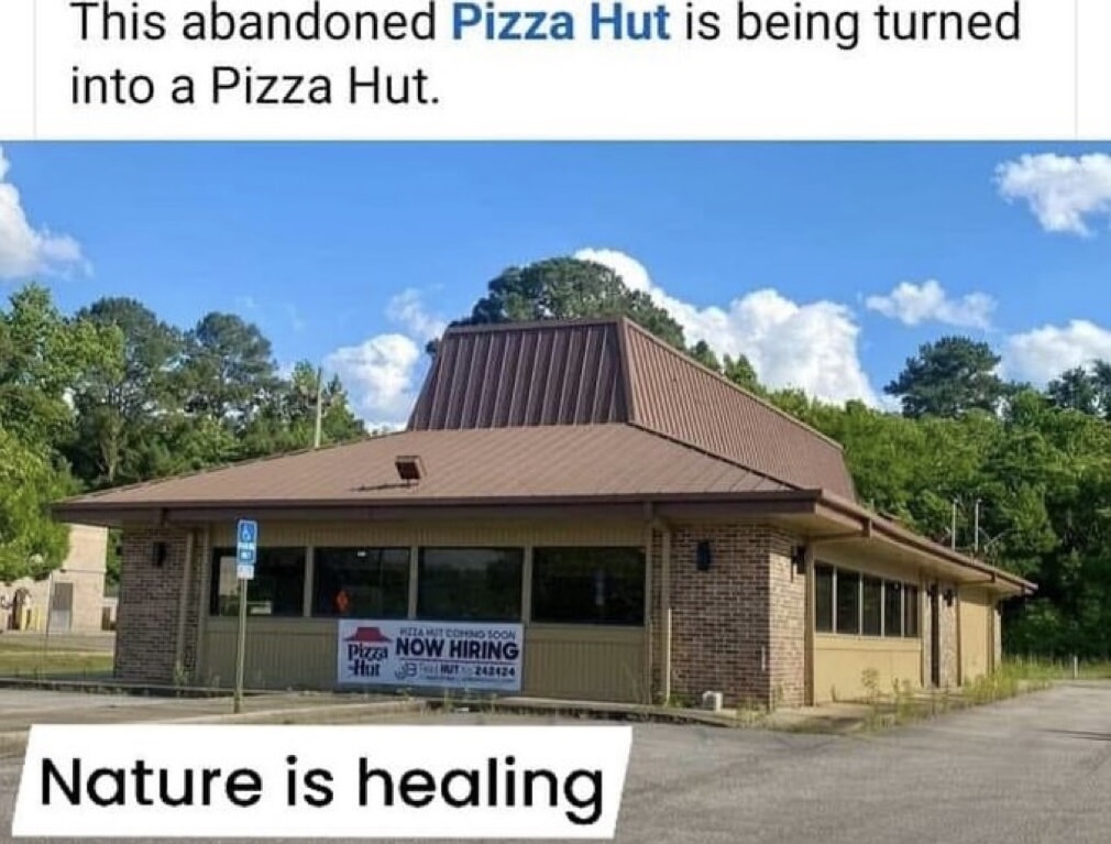 minus-squareTroy@lemmy.calinkfedilinkarrow-up13·1 year agoIn conclusion: pizza hut was good in (insert decade when you were younger)