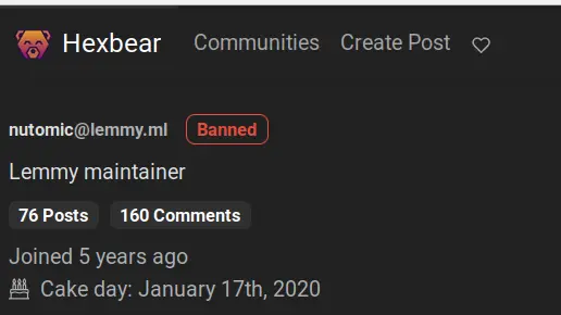 It’s uncanny, so many times when I run into a commenter with a specific axe to grind about hexbear, they got already banned for something weird, in this case 2 days prior
